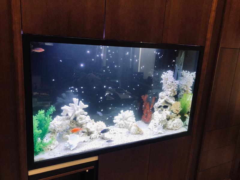 Встроенный аквариум 1600 литров с объёмными декорациями