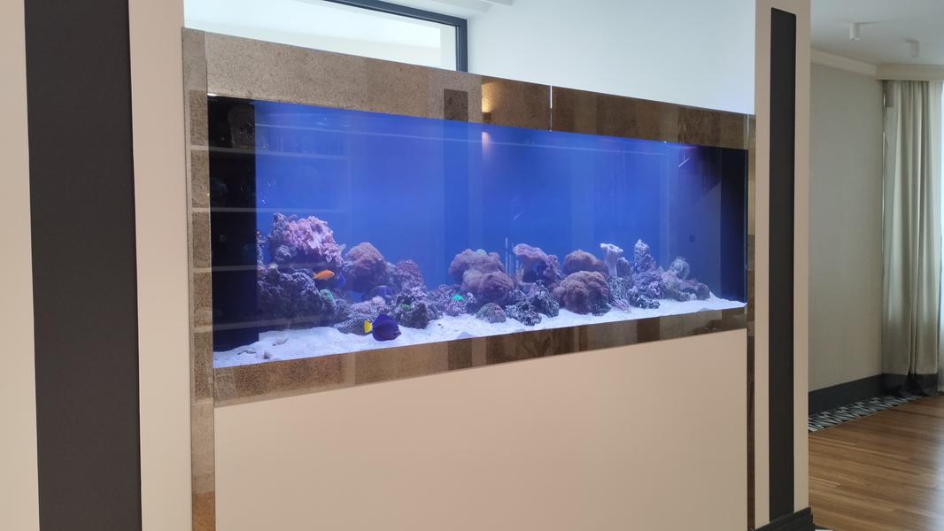 Встроенный в стену морской аквариум 1400 литров в жилом интерьере